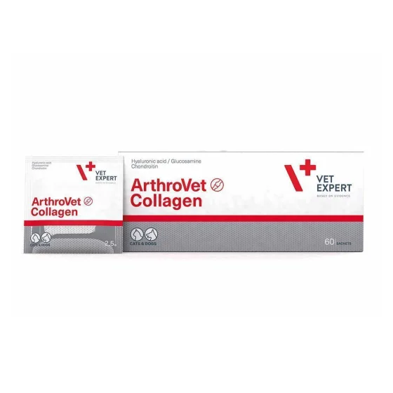 АртроВет Коллаген показания: Продукт рекомендован для собак и кошек с нарушенными функциями суставного хряща и суставов. Его можно использовать как в молодых животных в течение интенсивного роста, так и в старших животных, страдающих остеоартритом. состав коллаген дозировка Собаки - 1 пакетик на каждые 20 кг веса тела в день. Продукт может быть смешано с влажным или сухим кормом. У животного всегда должен быть доступ к свежей воде.