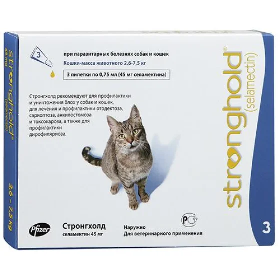 Капли Зоетис Stronghold 6% от блох и клещей у кошек весом от 2.6 до 7.5 кг, 0.75 мл, цена за 1 пипетку